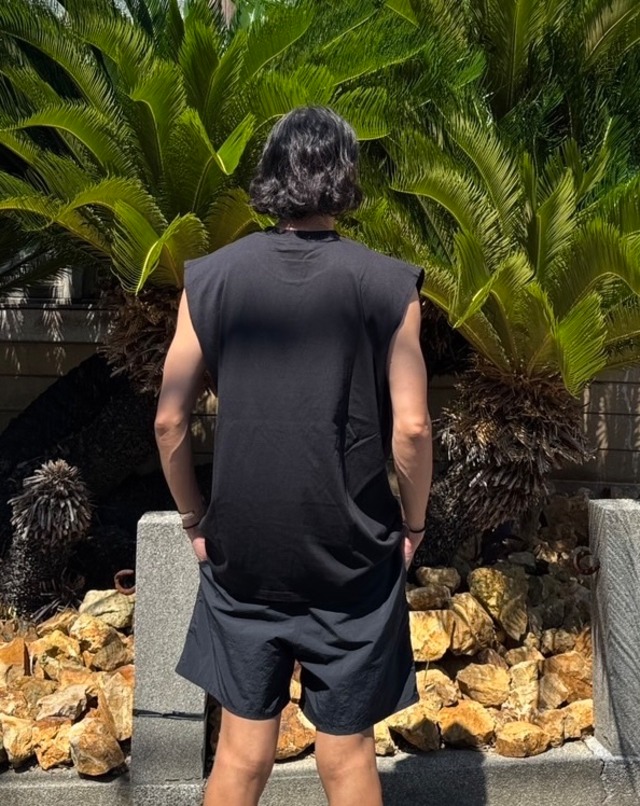 90年代のアメリカンアスレチックウェアを彷彿させる、身幅にゆとりのあるボックスシルエットのノースリーブTシャツ。太めの襟リブと、短めに設定した着丈が特徴的なスタンダードフィットです。