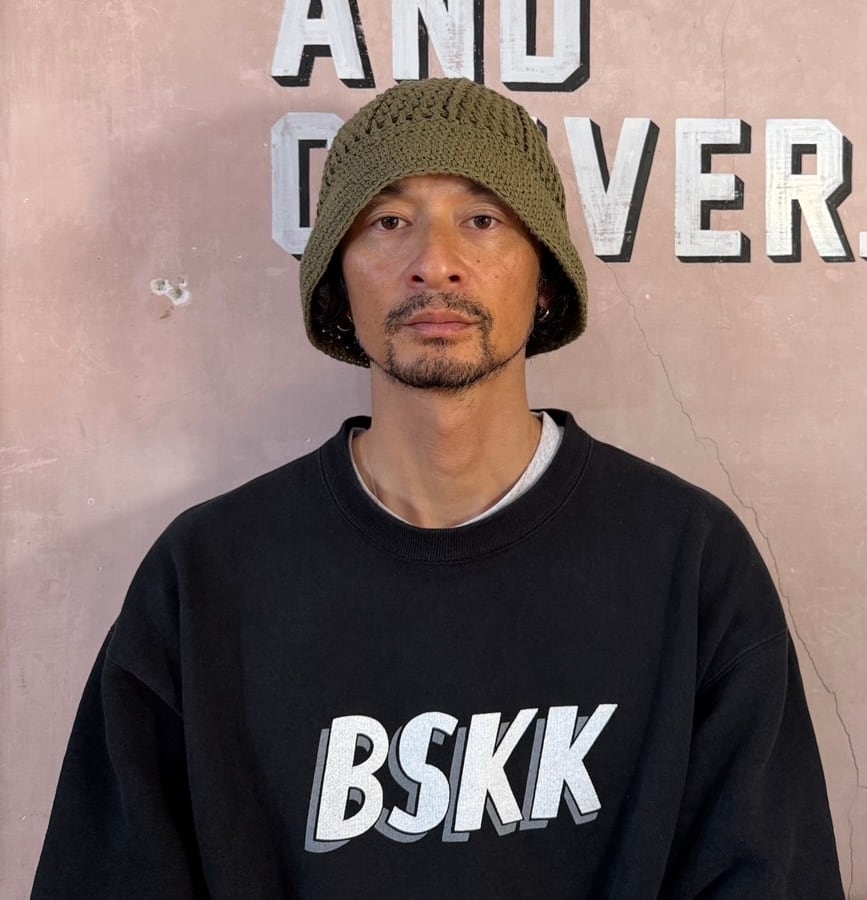 ハンドメイドのcotton kint HATで形やデザインはBSKK別注で制作して頂いてます。