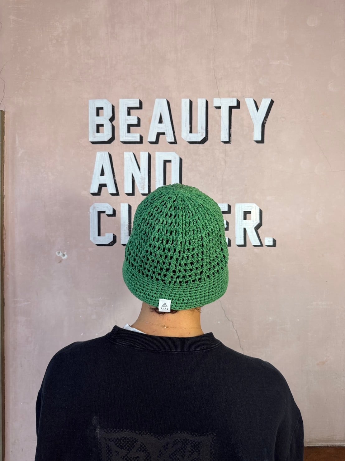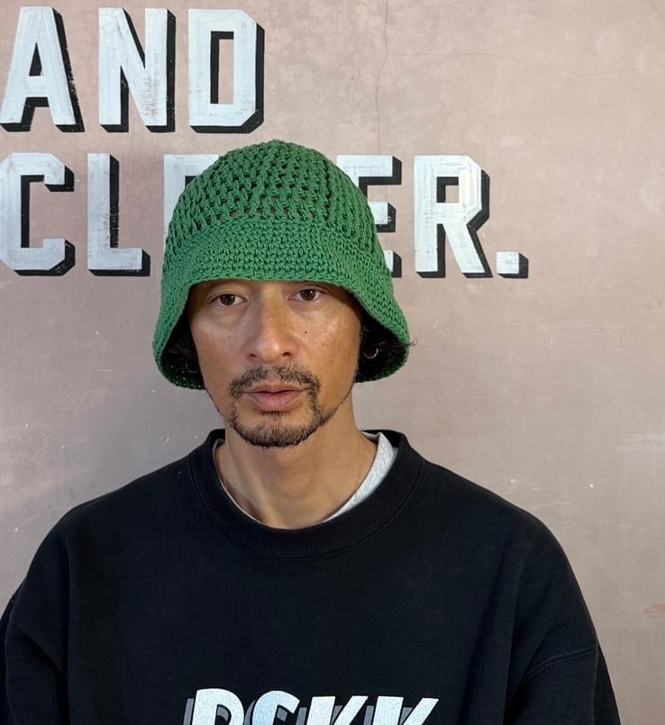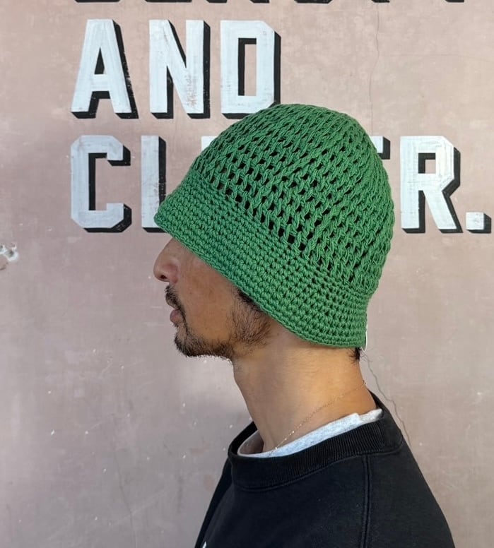 ハンドメイドのcotton kint HATで形やデザインはBSKK別注で制作して頂いてます。