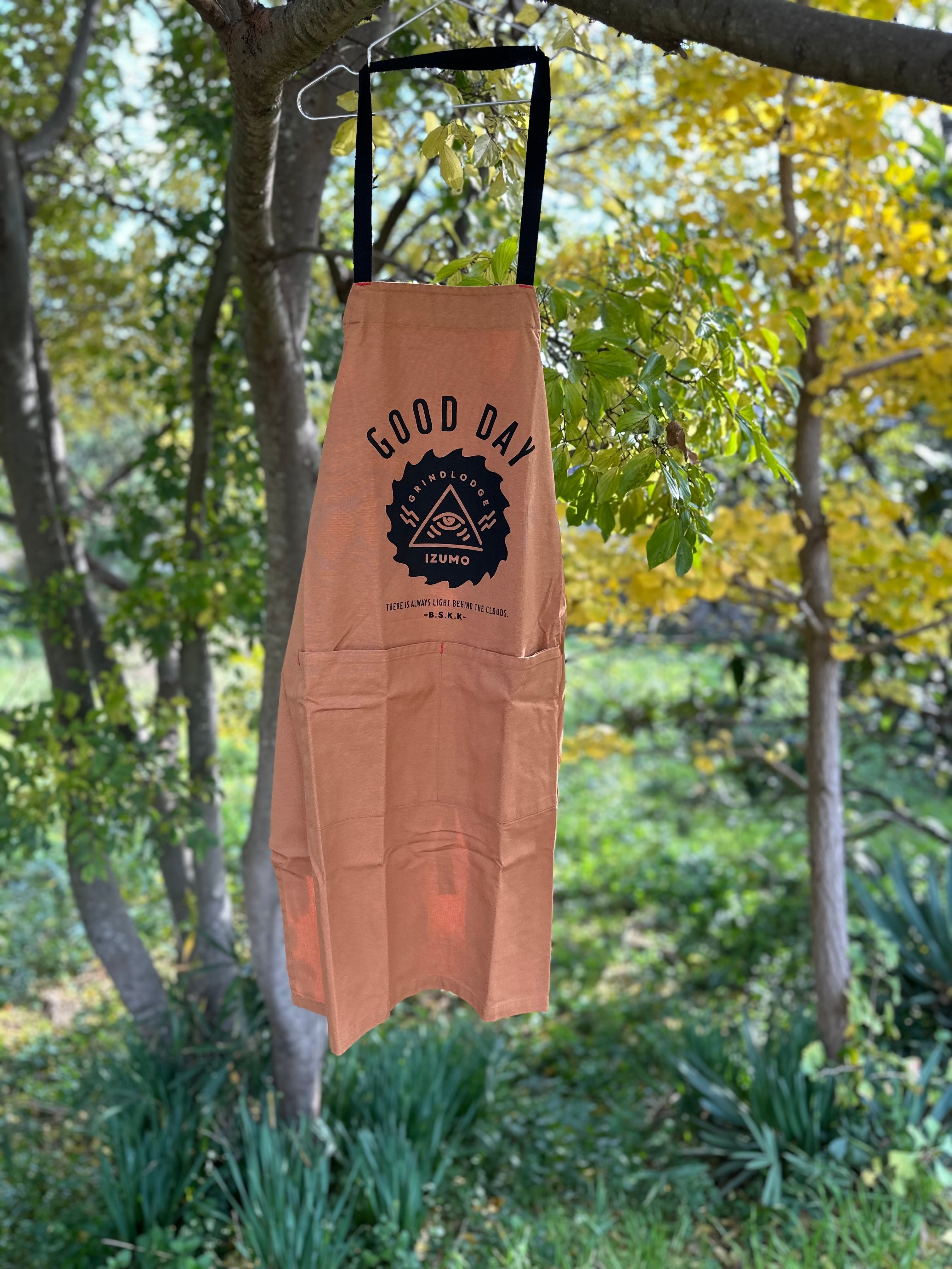 VOIRY製のエプロンに水性の染み込みインクでプリントしています。 ※ハンドプリントですのでプリントに欠けや掠れ、馴染みがある場合がございます。 ご承知の上で購入をして下さい。 ※クッション性の無い簡易包装にて発送です。 発送:レターパックライト