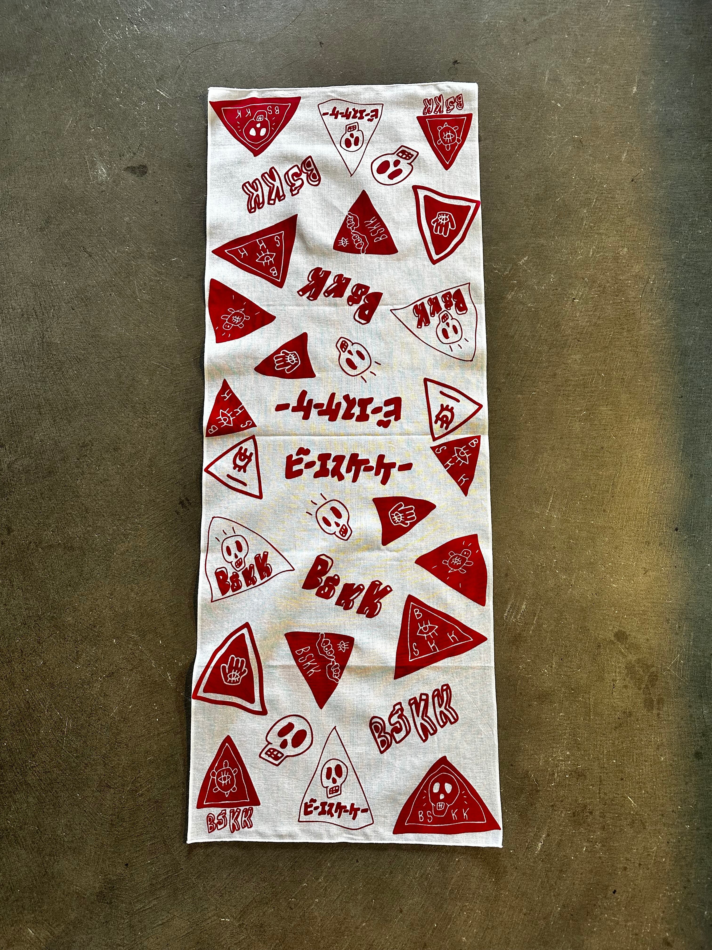 88センチ×34センチ 染み込みインクのREDを使用しております。 ハンドプリントの為に掠れ、欠け、滲み等がある場合がございます。 ご理解の上でご購入してください。 レターパックライトで発送致します