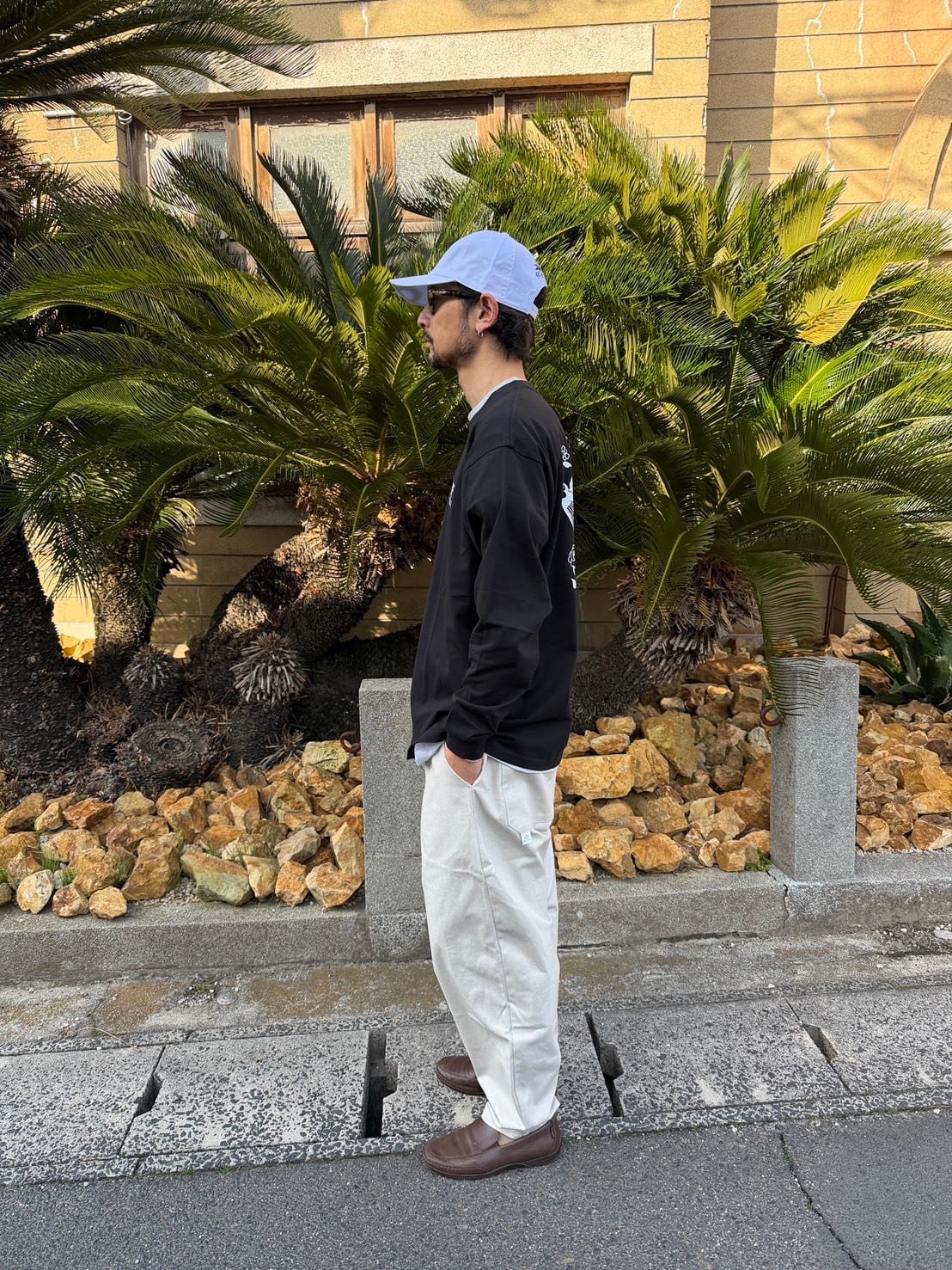 BODY:90年代を彷彿とさせるゆったりとしたボクシーシルエットの長袖Tシャツです。衿の太めのリブと、若干短めに設定した着丈が特徴的なGOATのスタンダードモデル。