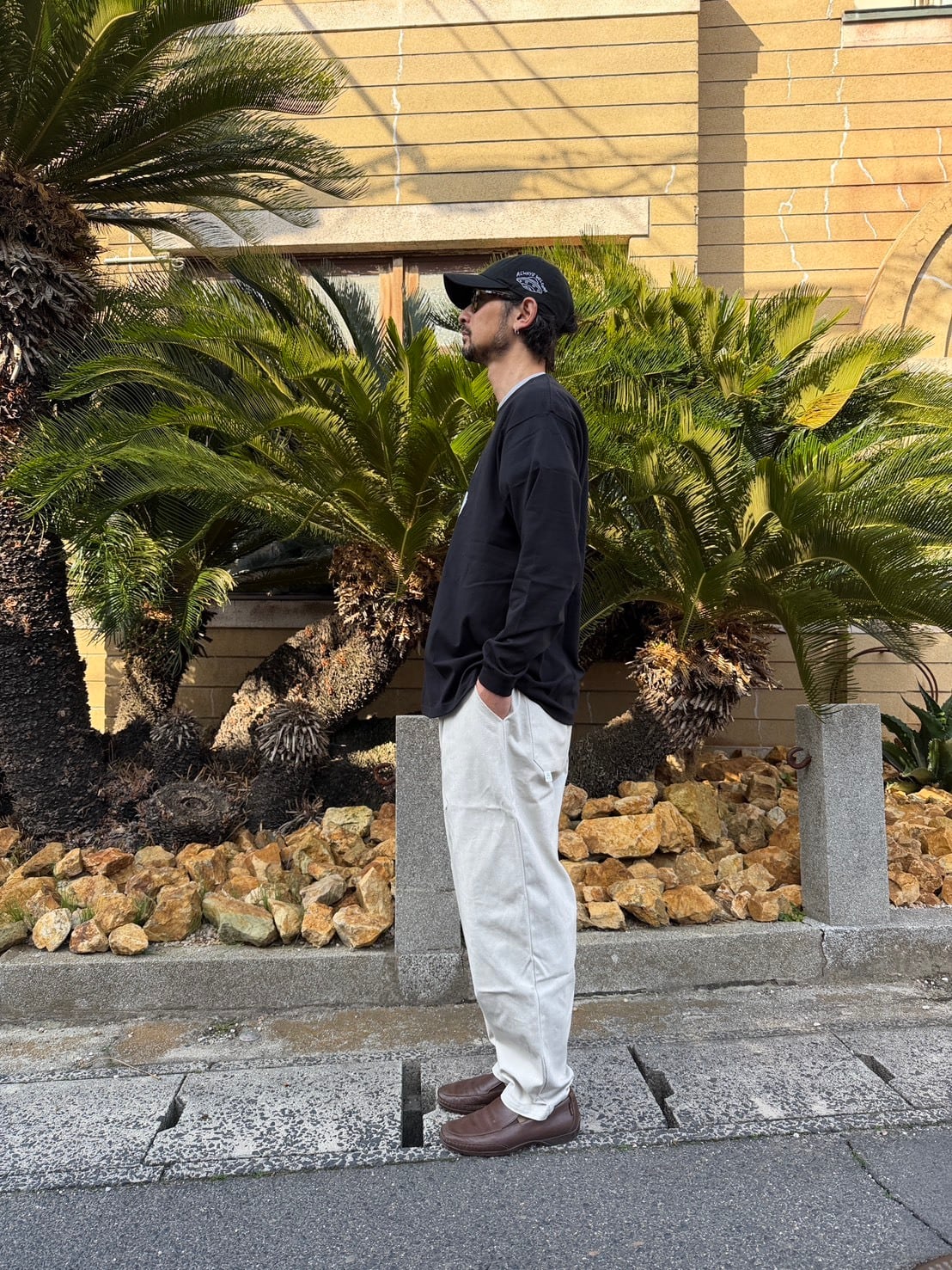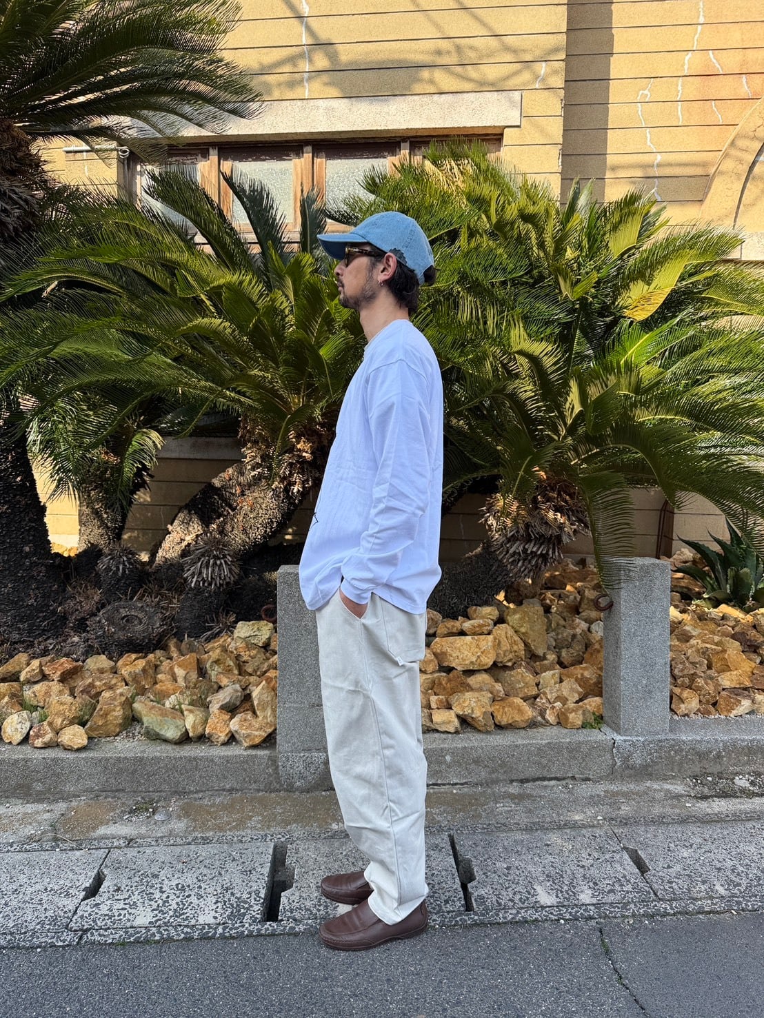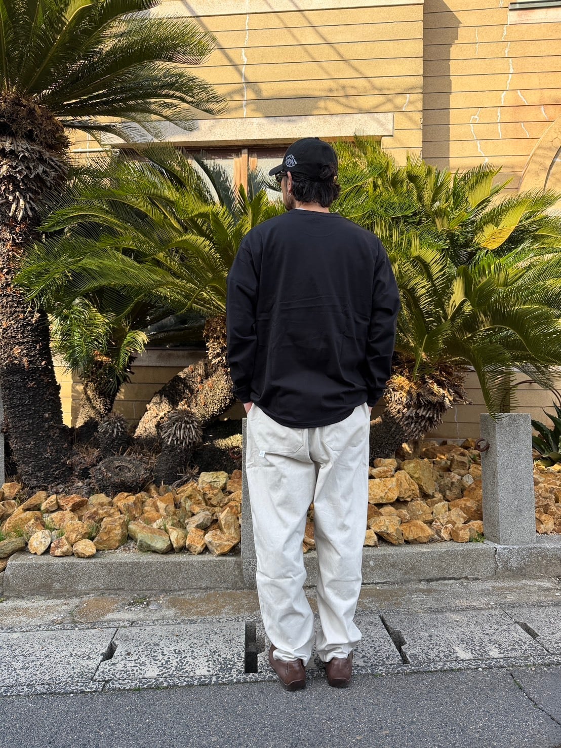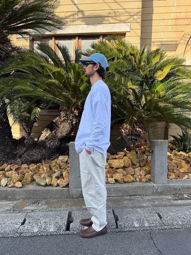 BODY:90年代を彷彿とさせるゆったりとしたボクシーシルエットの長袖Tシャツです。衿の太めのリブと、若干短めに設定した着丈が特徴的なGOATのスタンダードモデル。