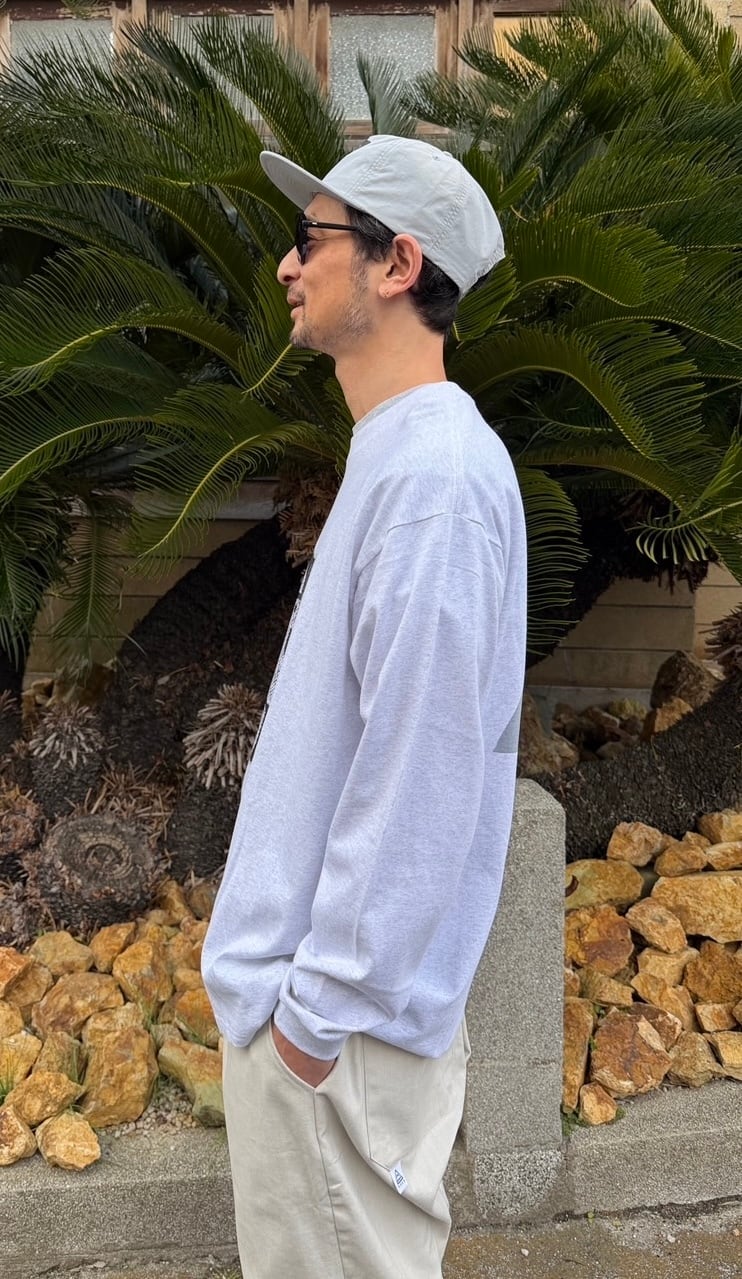 BODY:90年代を彷彿とさせるゆったりとしたボクシーシルエットの長袖Tシャツです。衿の太めのリブと、若干短めに設定した着丈が特徴的なGOATのスタンダードモデル。