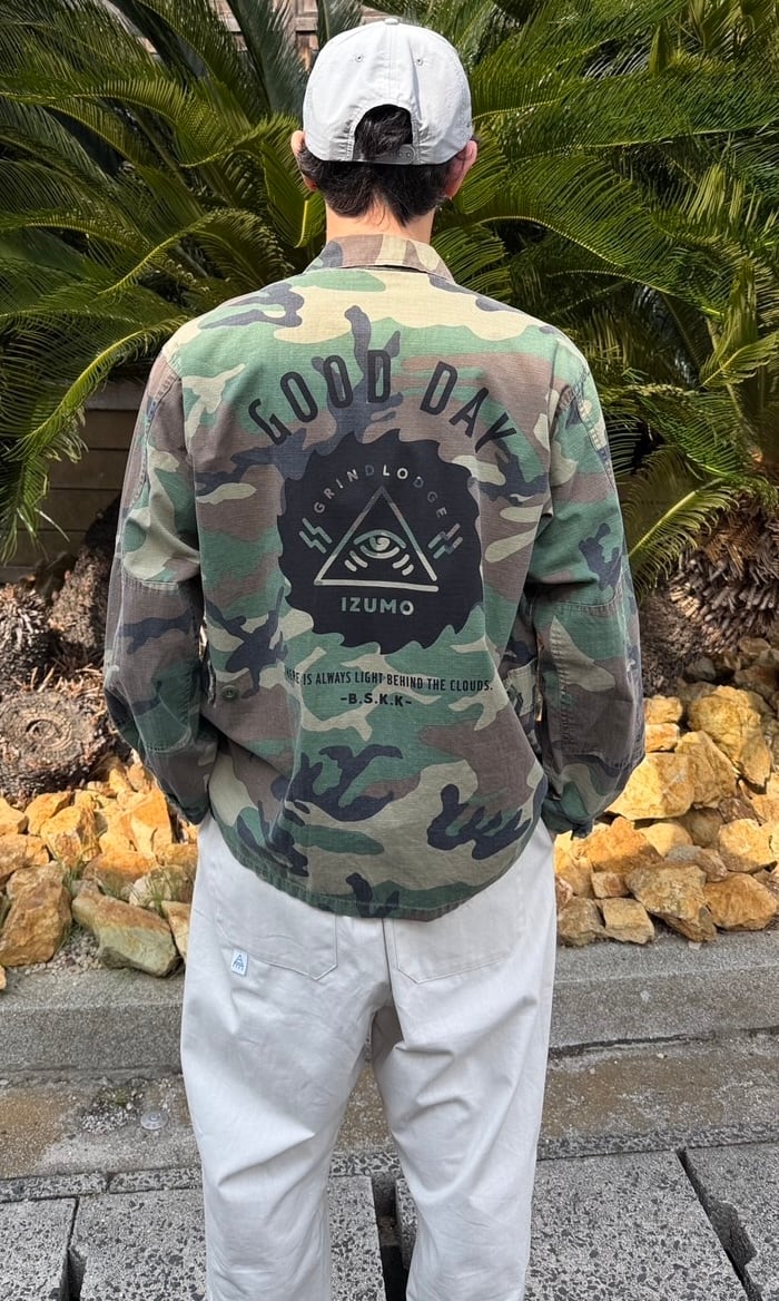 シャツ感覚で羽織れるのでこれからの季節にぴったりです。 身幅60cm 着丈72cm ※古着にプリントしているので古着へのご理解の程宜しくお願いします。 レターパックプラスで発送になります