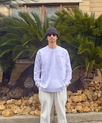 BODY:90年代を彷彿とさせるゆったりとしたボクシーシルエットの長袖Tシャツです。衿の太めのリブと、若干短めに設定した着丈が特徴的なGOATのスタンダードモデル。