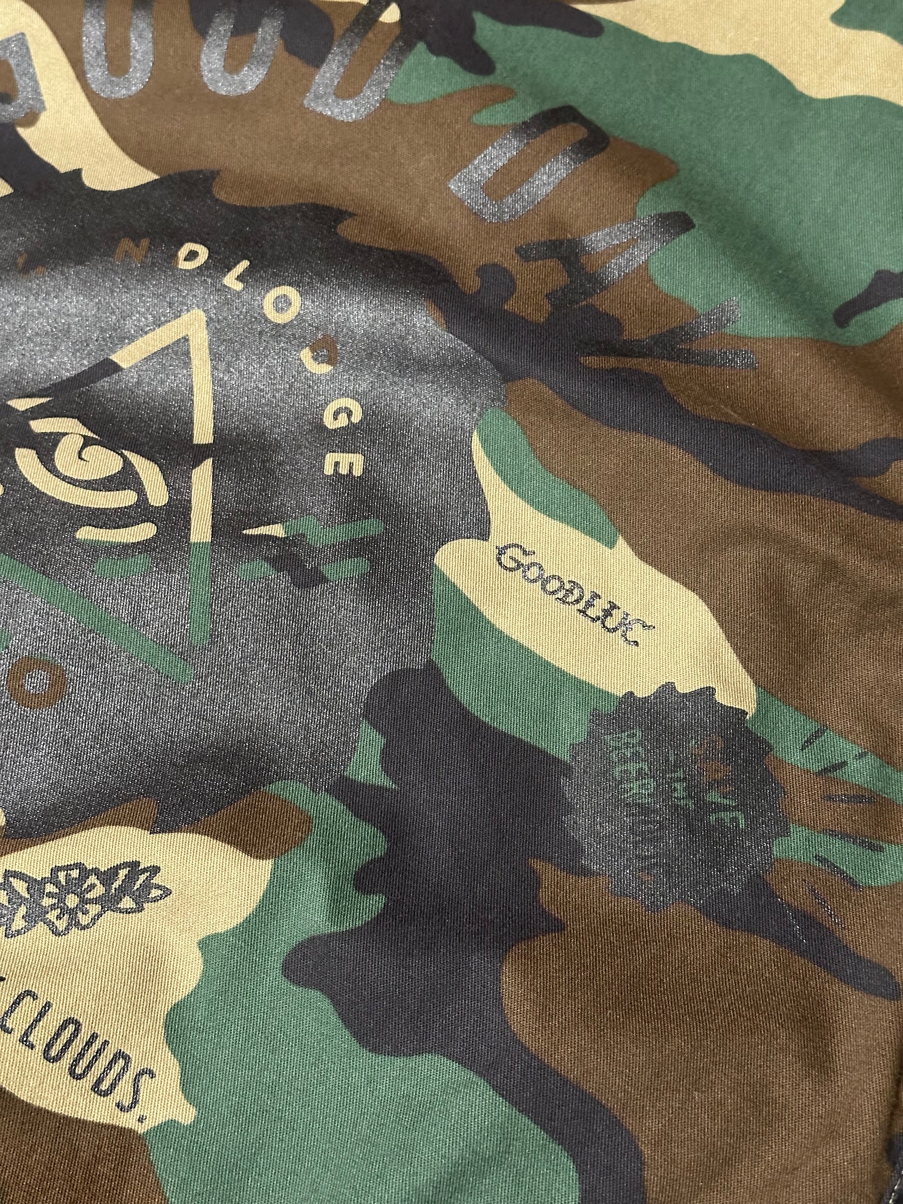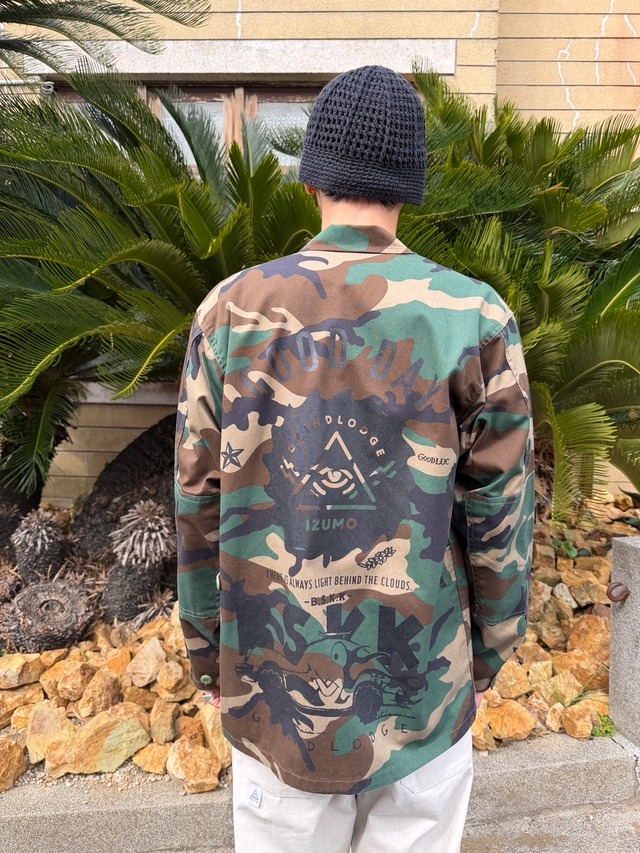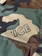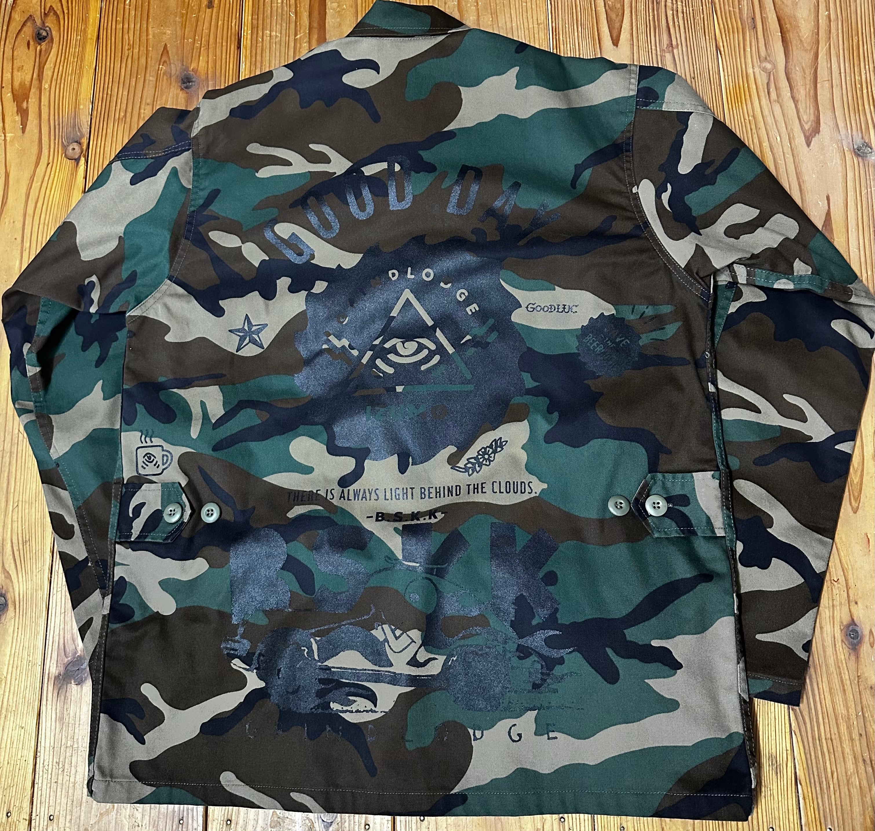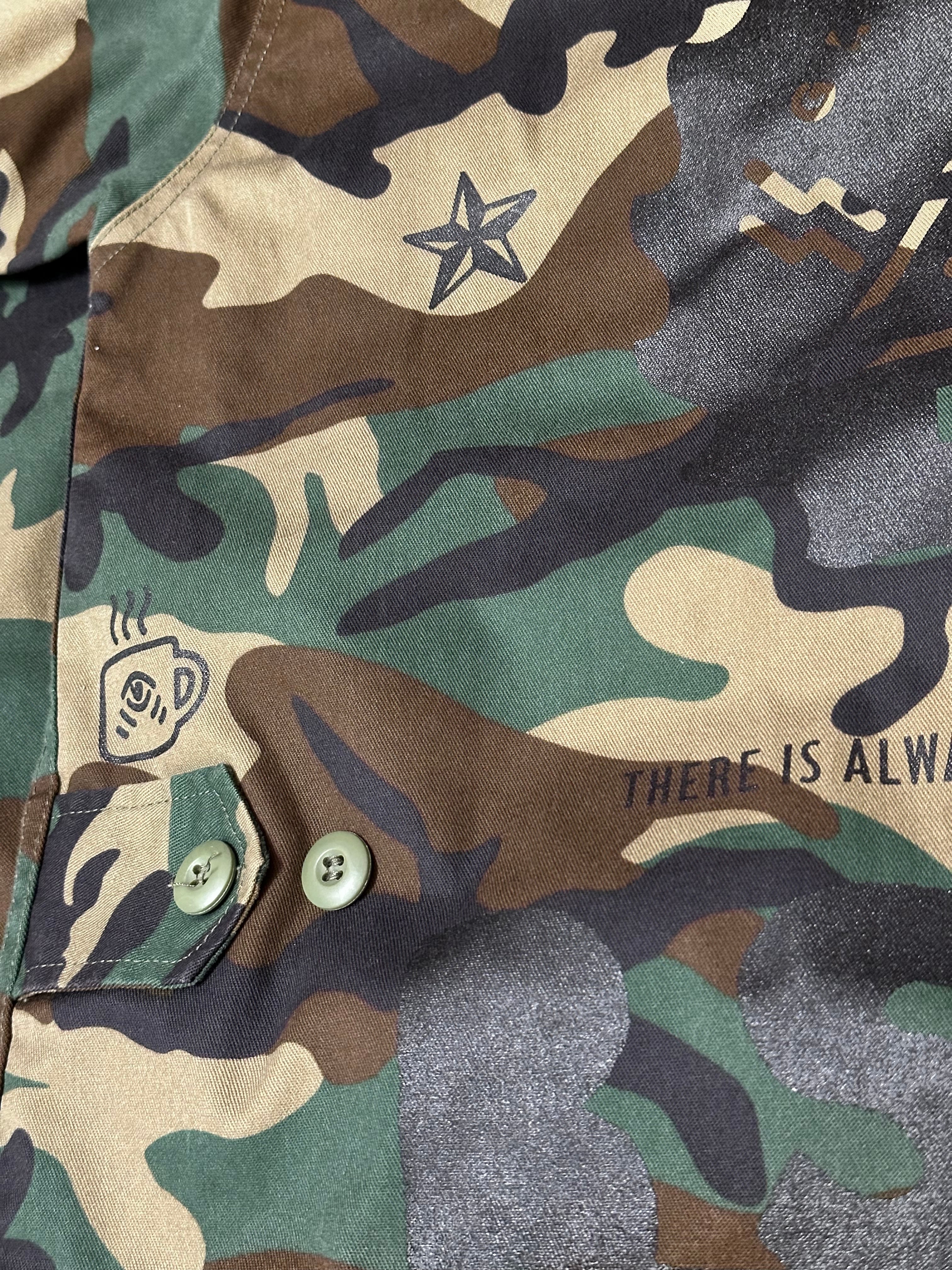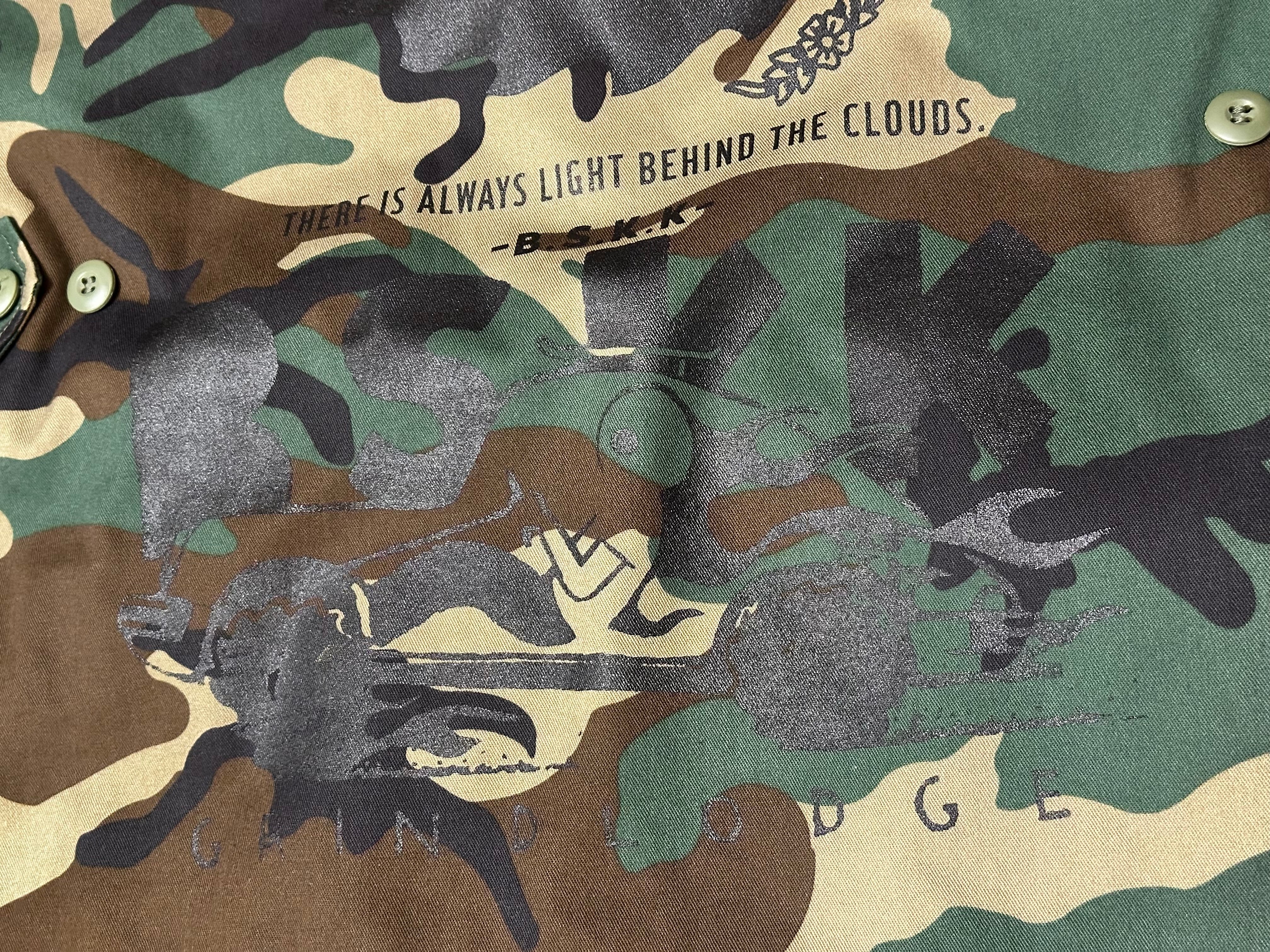 USのmilitary shirt JKTにランダムにプリントが施してあります。