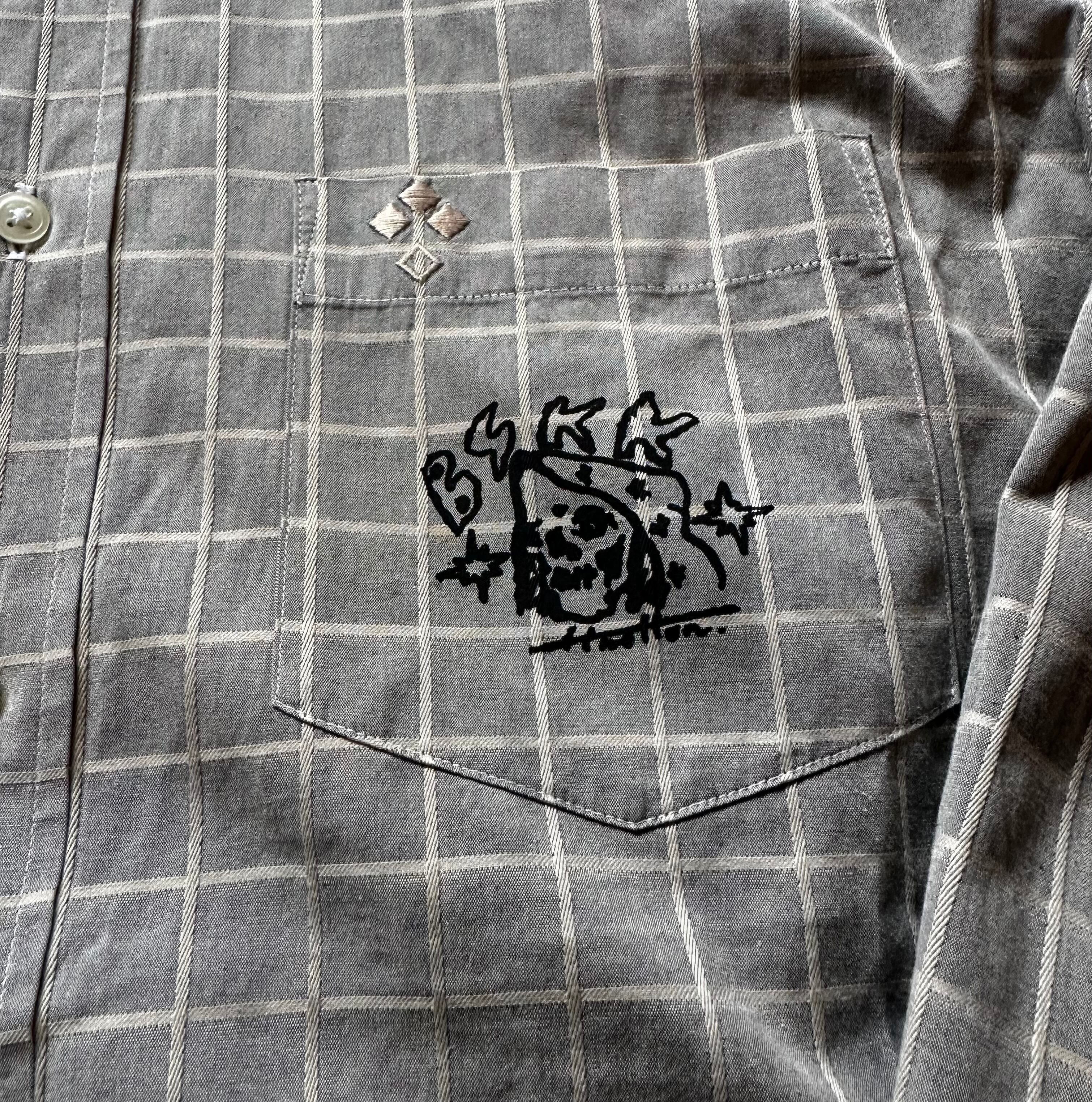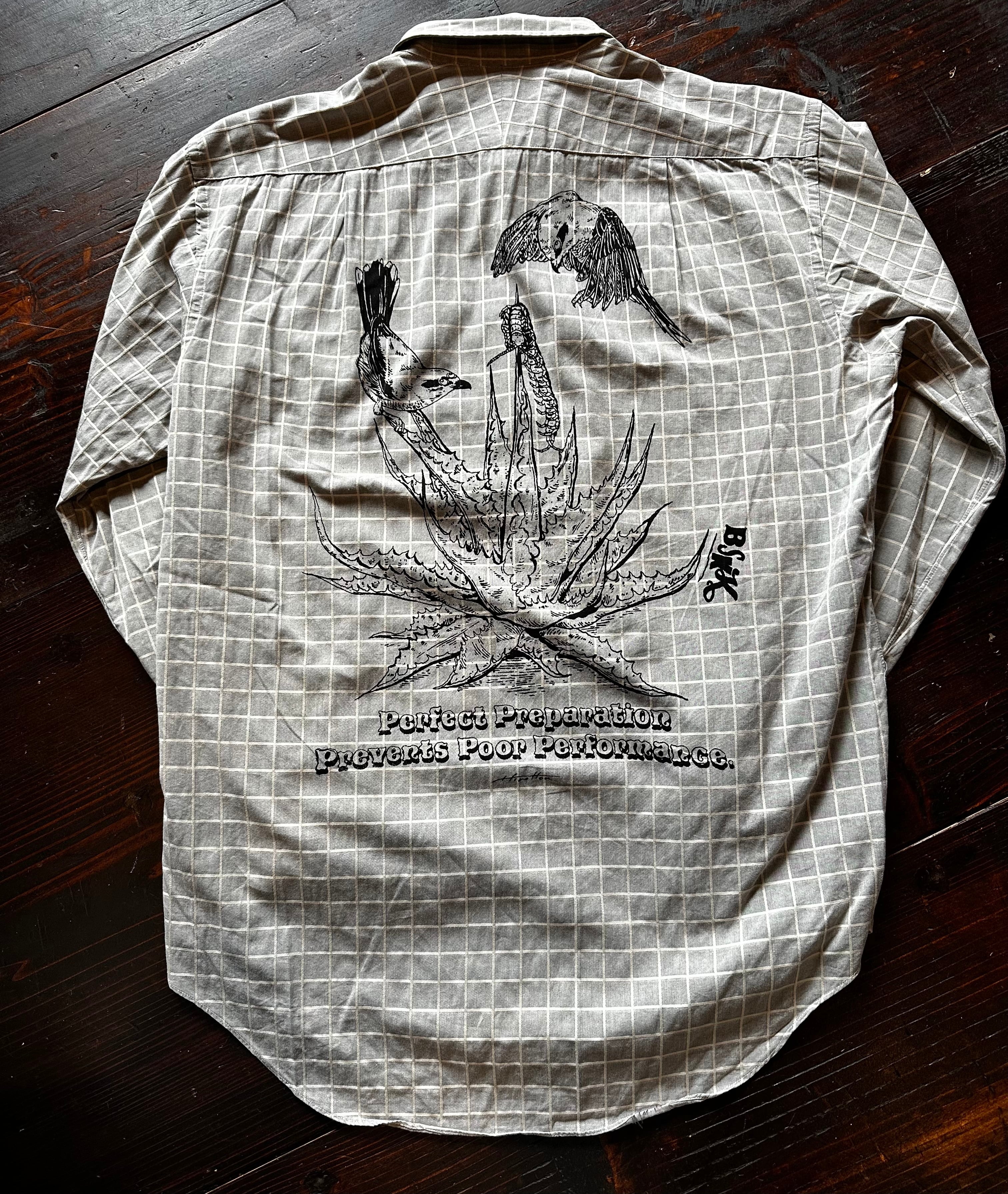コットン100%の凹凸のある生地のシャツにHIROTTONデザインのアガベをプリントしました。